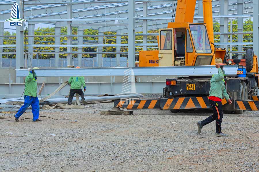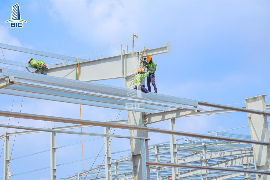 After completing the installation process of the pre-engineered steel frame building, the construction unit must conduct thorough inspections. Review all columns, frames, trusses, bolts fixed and check gaps at the roof sheet joints as well as at the ventilation openings to ensure the best quality of the project, with no errors.