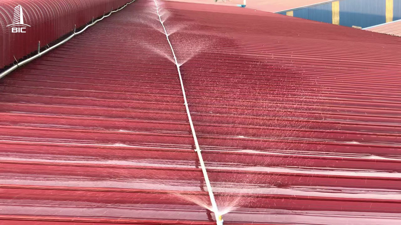 Principle: spray water on the entire roof to cool the factory from the outside