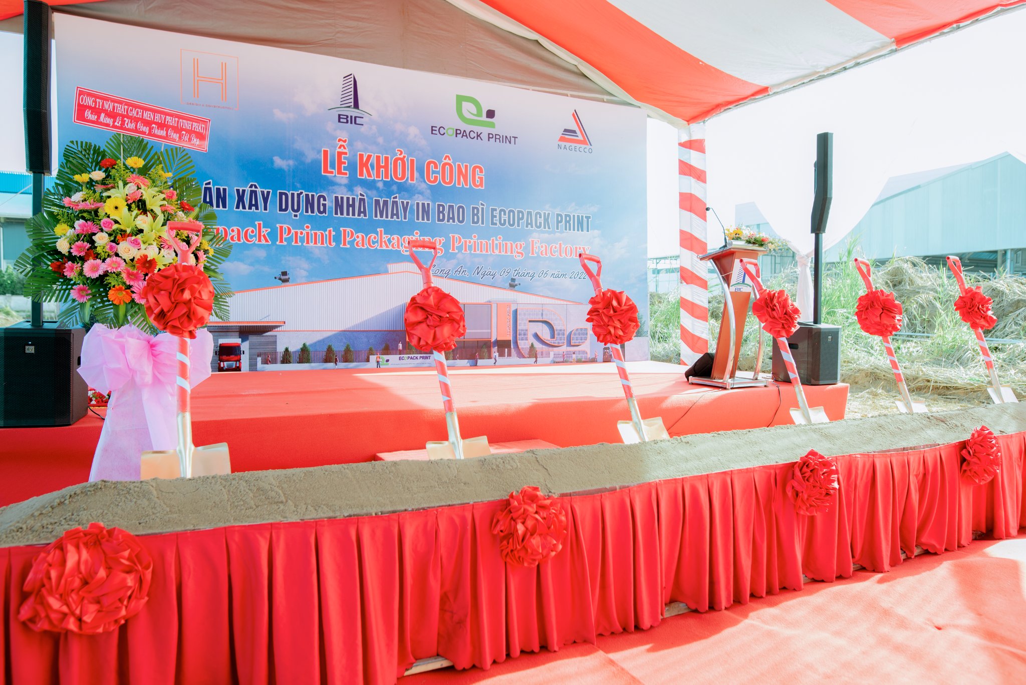 On June 9, 2022, Ecopack Print Joint Stock Company started the construction of a packaging printing factory project with modern printing technology, which can be printed on many different types of environmentally friendly materials such as film. printing BOPP and paper, etc. quickly seize the opportunity to promptly participate in the production, supply and export chain of environmentally friendly packaging for leading retail groups in the world. Ecopack Print packaging factory project was built at Lot F6, Road No. 6, Hoa Binh Industrial Park, Nhi Thanh Commune, Thu Thua District, Long An Province.
