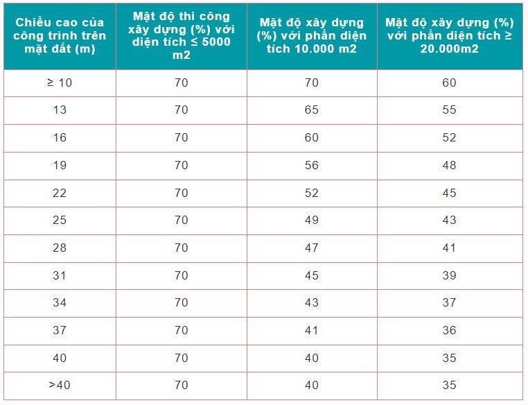 + Net construction density: this is the ratio of the occupied area of the construction works on the area of the land lot, excluding the occupied area of the ornamental landscape of swimming pools, parking lots and outdoor sports fields. God.
