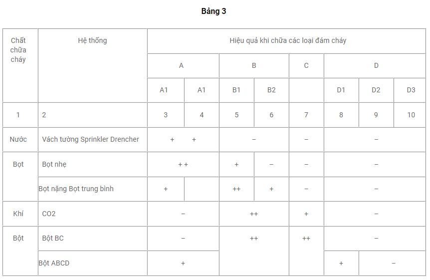 Effectiveness of extinguishing fires when designing fire extinguishing systems see Table 3.