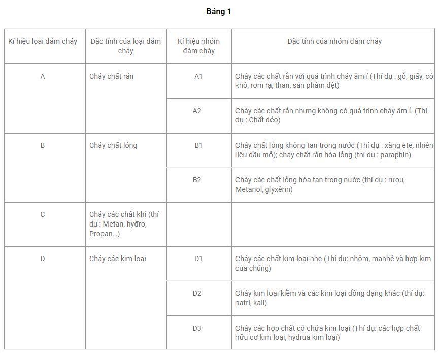 Depending on the state of the combustible material and combustible material, fires are classified into four types: solid fires denoted A, liquid fires denoted B, gas fires denoted C and metal fires denoted D. Each type is also grouped to ensure high efficiency when using the fire suppression system.