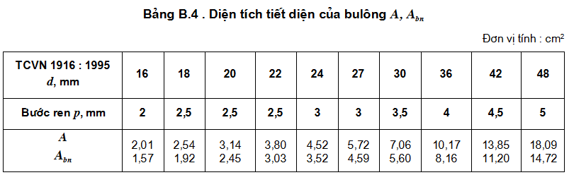 After determining the shear and tensile forces in the bolt, check according to the conditions in TCVN.