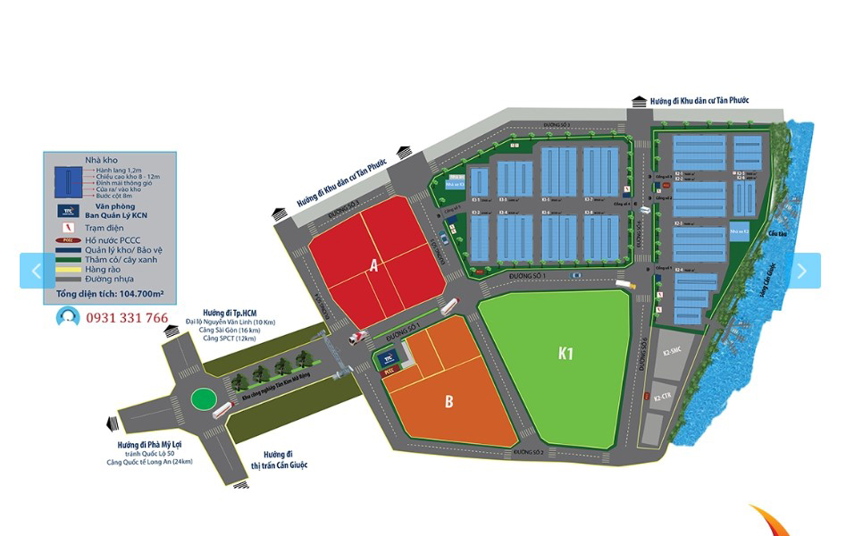 Next to Can Giuoc River and near other industrial parks such as: Long Hau Industrial Park, Hiep Phuoc Industrial Park and adjacent to Tan Kim Industrial Park.