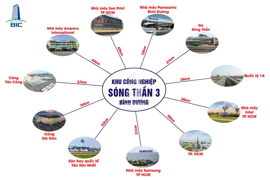 Những khoảng cách địa lý này cho thấy rằng KCN Sóng Thần III không chỉ có vị trí đắc địa mà còn có lợi thế về giao thông, giúp các doanh nghiệp hoạt động hiệu quả và thuận lợi trong việc nhập xuất hàng hóa và di chuyển nhân lực.